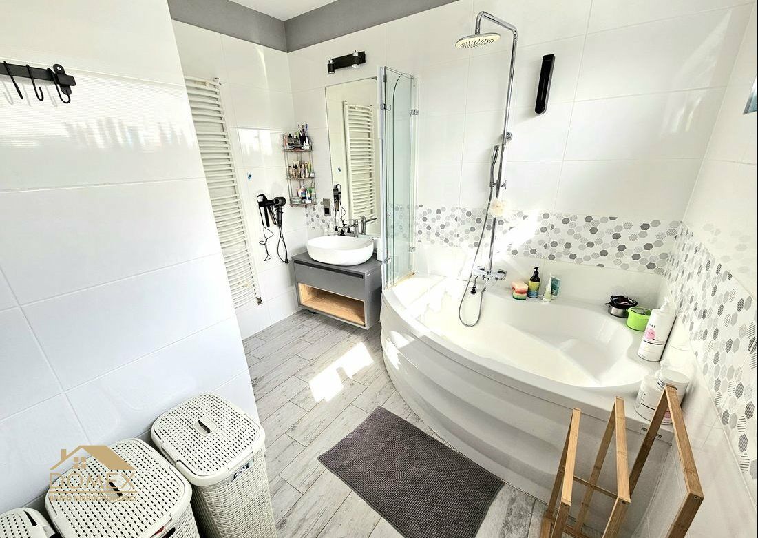 • elegancka łazienka z wanną i prysznicem,