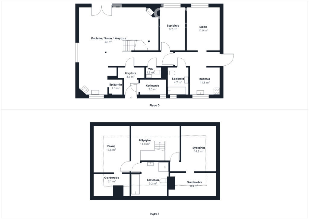 - pomieszczenie gospodarcze i kotłownia z piecem dwufunkcyjnym i
