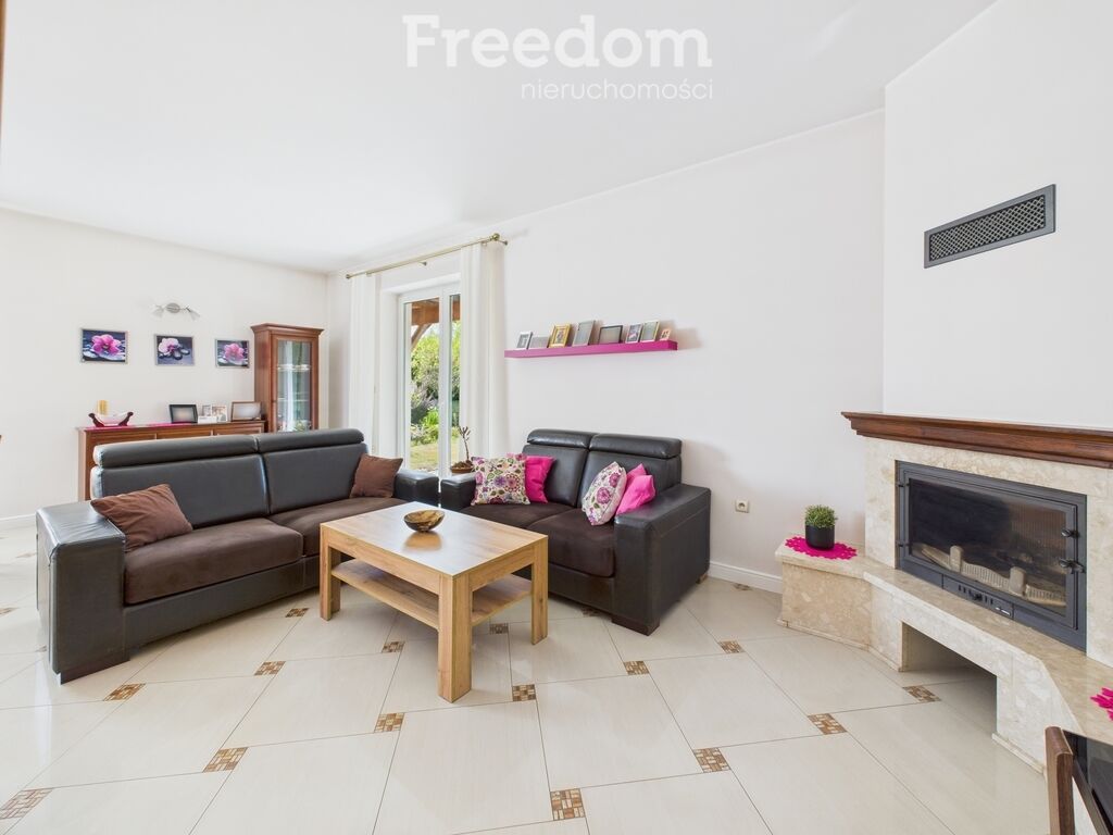 - salon z kominkiem, wydzieloną częścią jadalnianą i wyjściem na